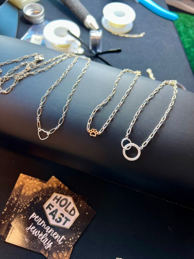 Hold Fast Handmade now offers permanent jewelry! Our social media is the best way to browse stainless steel, 14k gold filled, and .925 sterling silver chains, + connectors & charms. Follow us on Instagram to see what we have in stock.